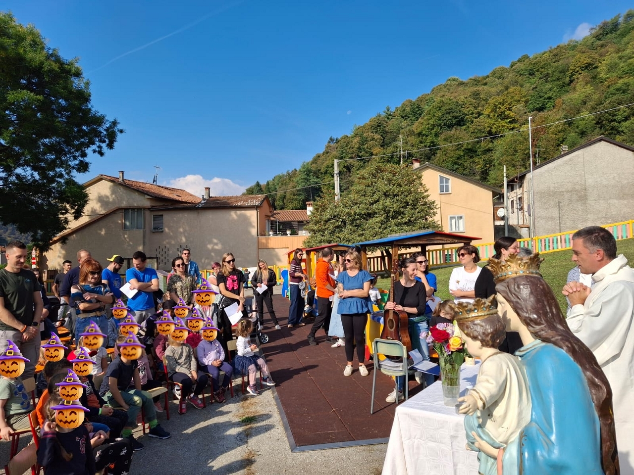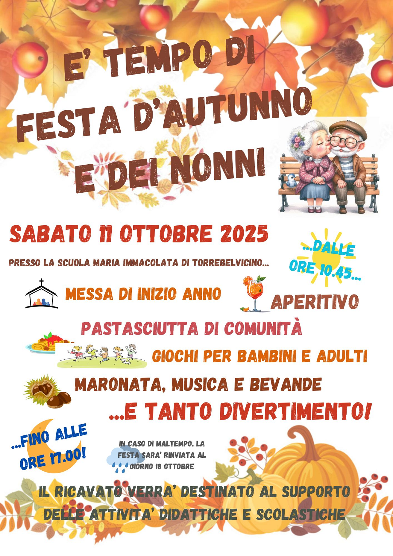La giornata è iniziata con la Santa Messa presso il parco della scuola, seguita da un momento conviviale che ha riunito grandi e bambini: un ricco aperitivo per tutti, la pastasciutta preparata con amore dalle nostre super cuoche, un goloso buffet di dolci, birra al bar per gli adulti e naturalmente le immancabili castagne d’autunno!